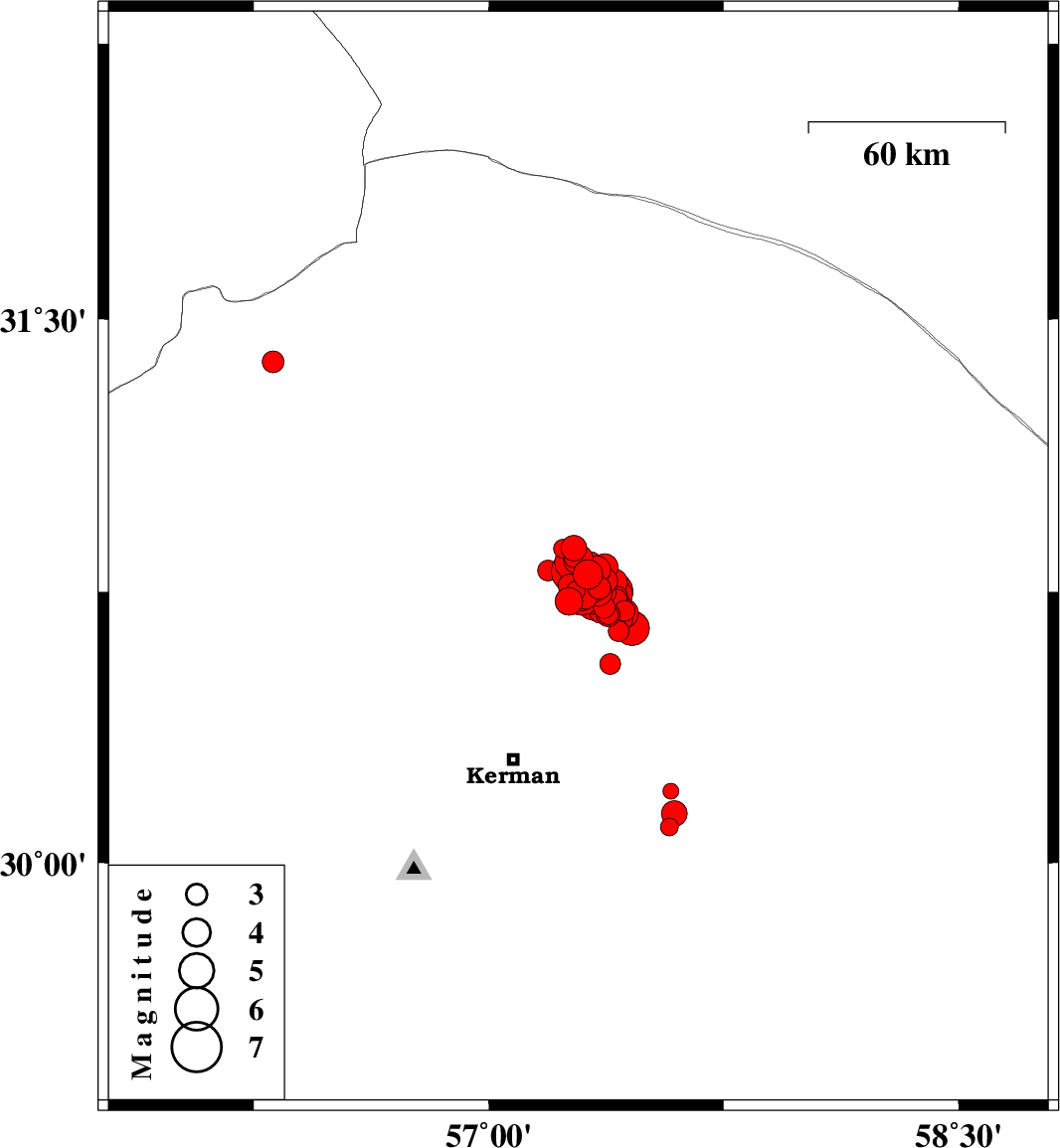 2017/12/02 10:50:40.4 14:20:40.4 30.75157.35615 ML4.1 Kerman Province, 58 km North-East of Kerman