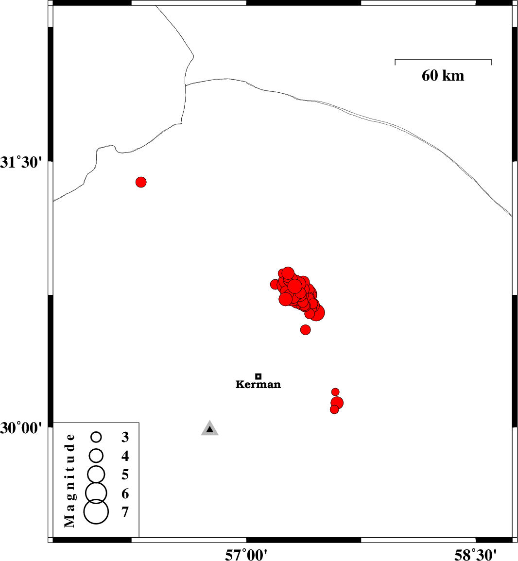 2017/12/02 10:50:40.4 14:20:40.4 30.75157.35615 ML4.1 Kerman Province, 58 km North-East of Kerman