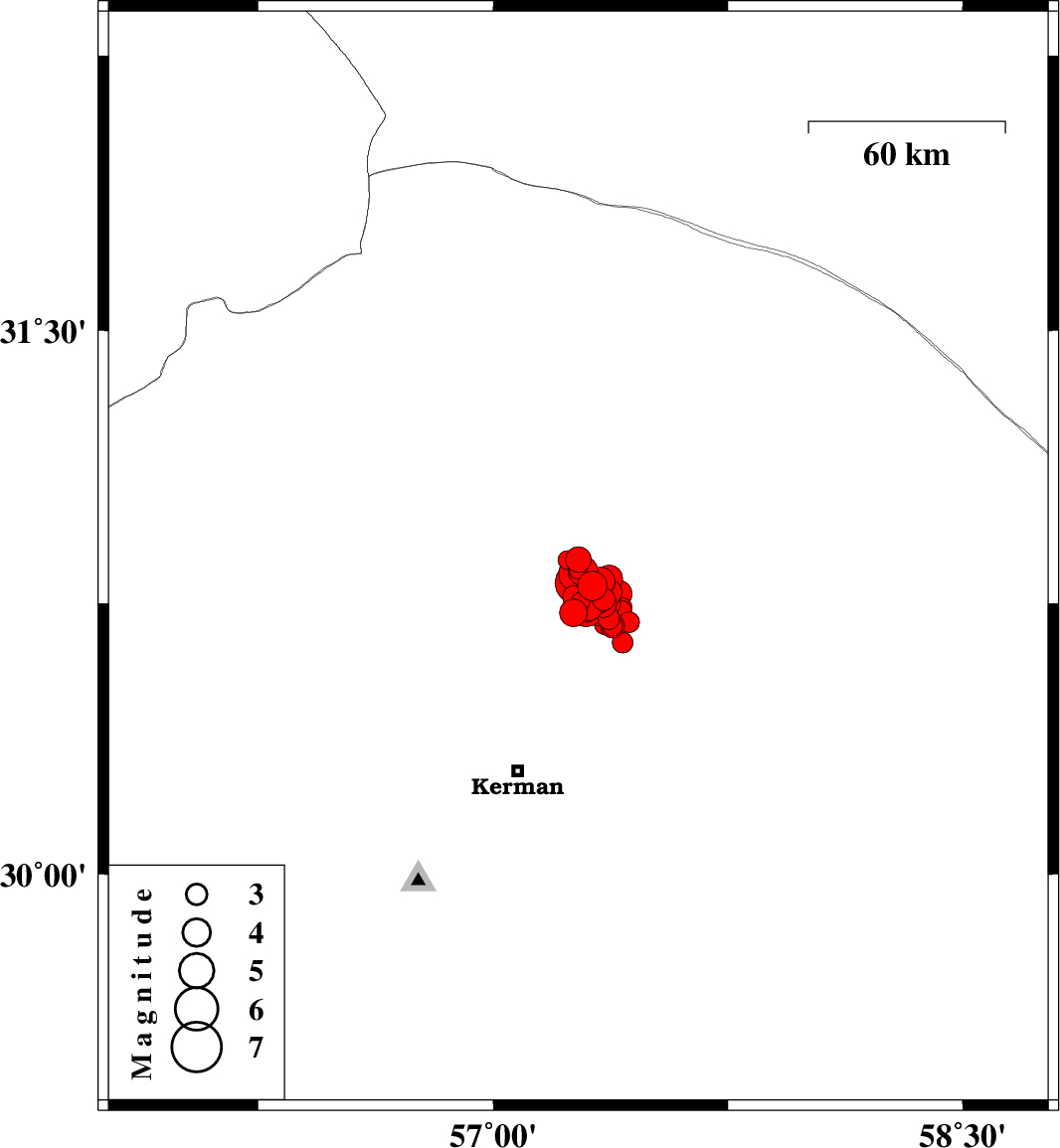 2017/12/12 09:42:22.6 13:12:22.6 30.79757.27915 ML4.2 Kerman Province, 60 km North-East of Kerman