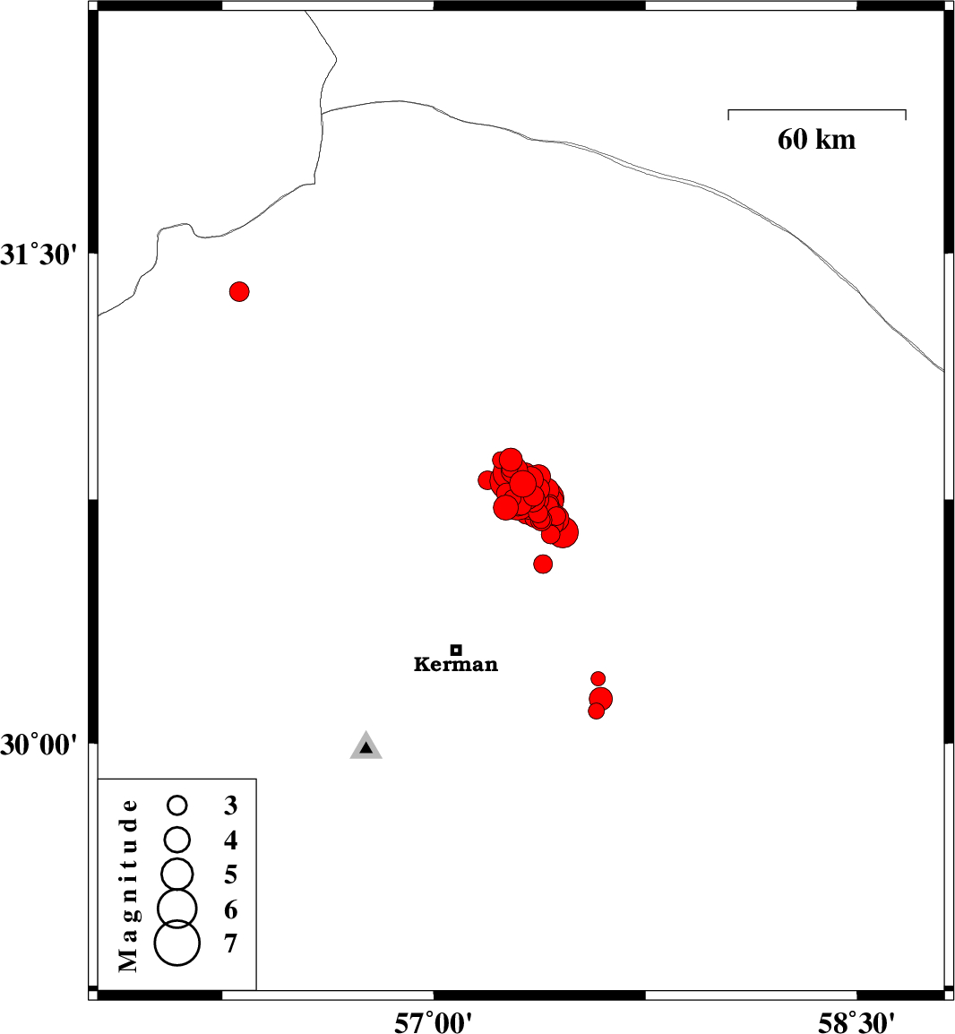 2017/12/02 10:50:40.4 14:20:40.4 30.75157.35615 ML4.1 Kerman Province, 58 km North-East of Kerman