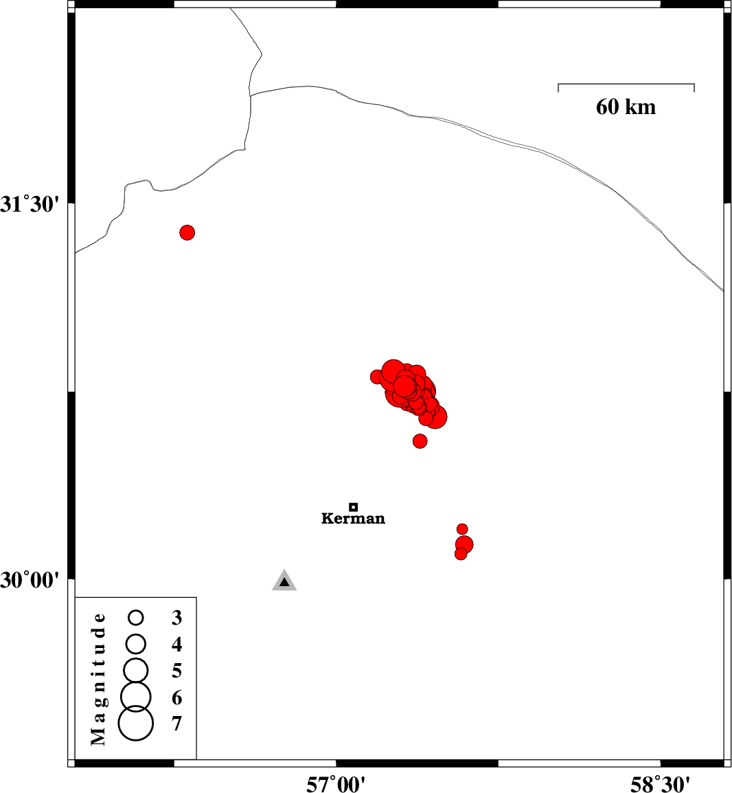 2017/12/02 10:50:40.4 14:20:40.4 30.75157.35615 ML4.1 Kerman Province, 58 km North-East of Kerman