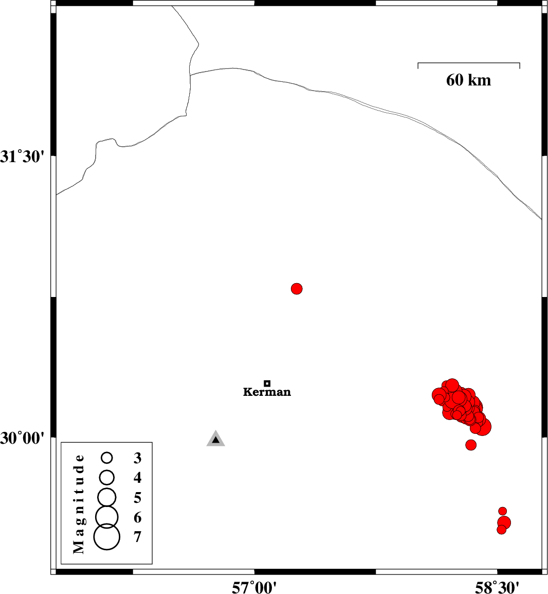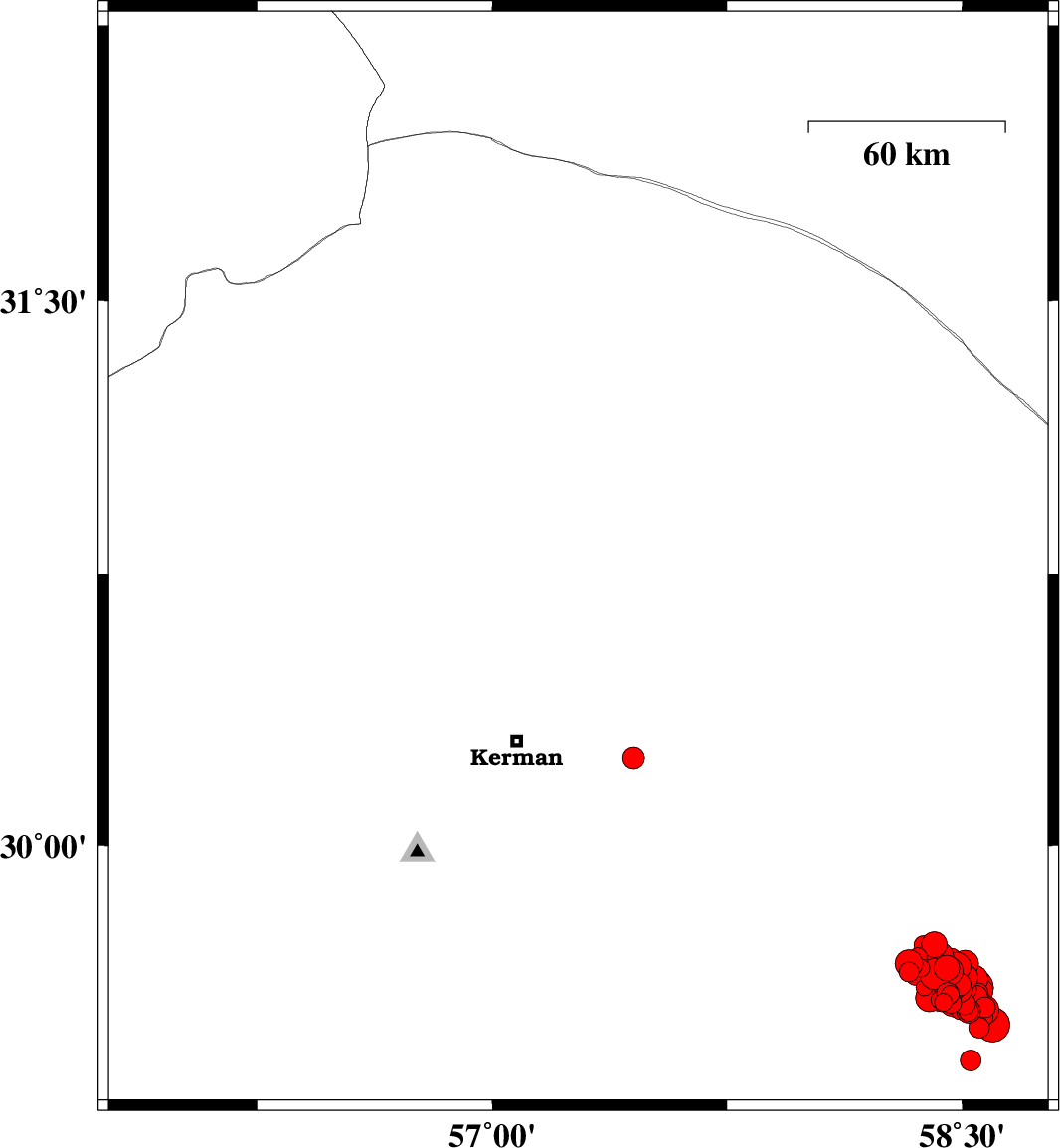2017/12/02 10:50:40.4 14:20:40.4 30.75157.35615 ML4.1 Kerman Province, 58 km North-East of Kerman