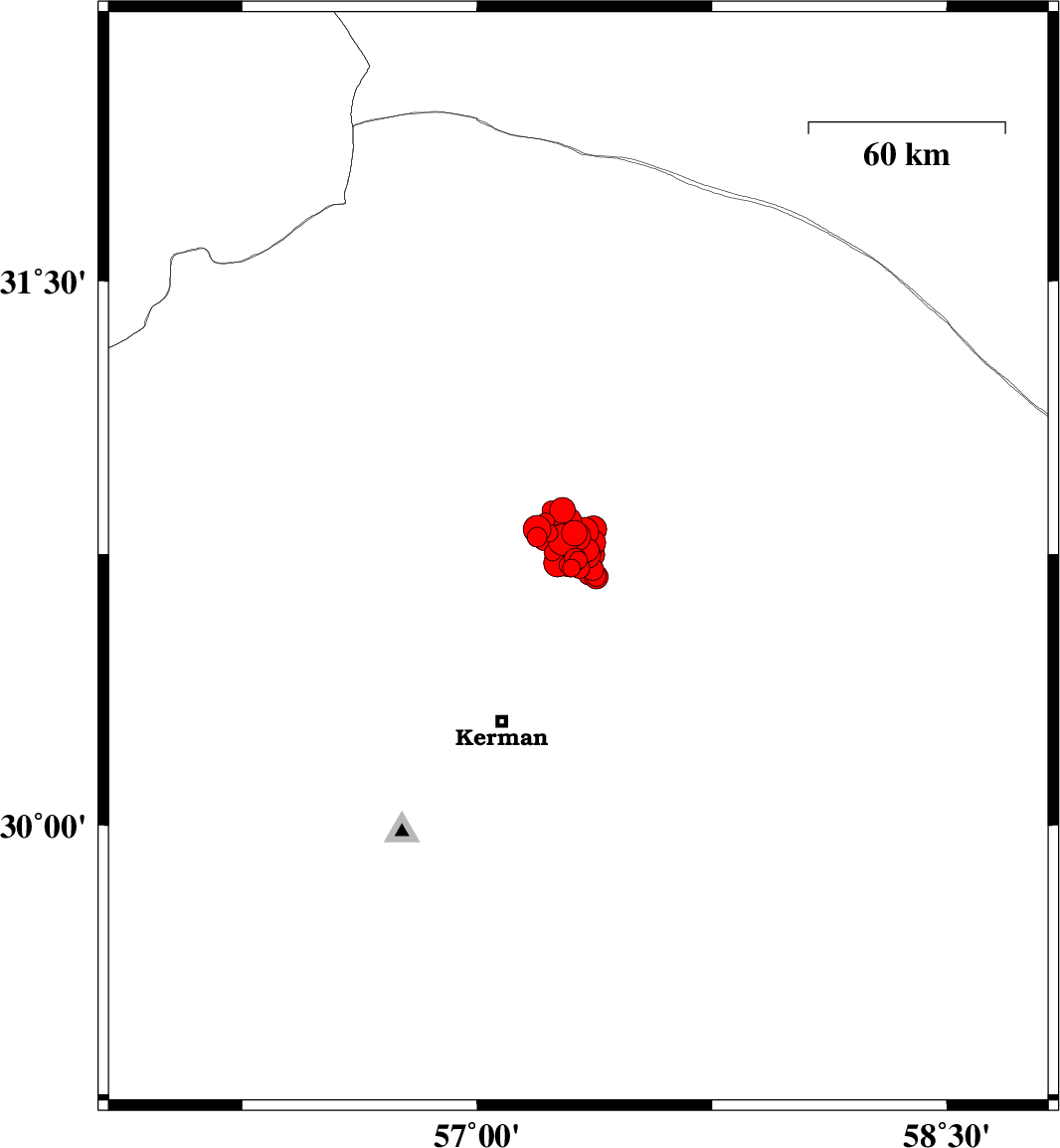 2017/12/12 11:42:23.6 15:12:23.6 30.79257.30714 ML3.2 Kerman Province, 60 km North-East of Kerman