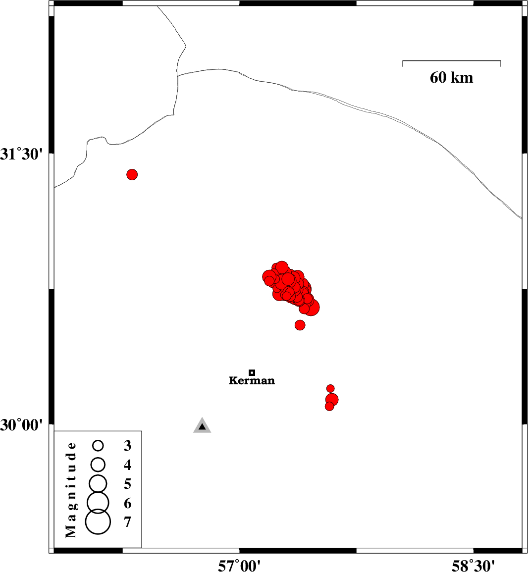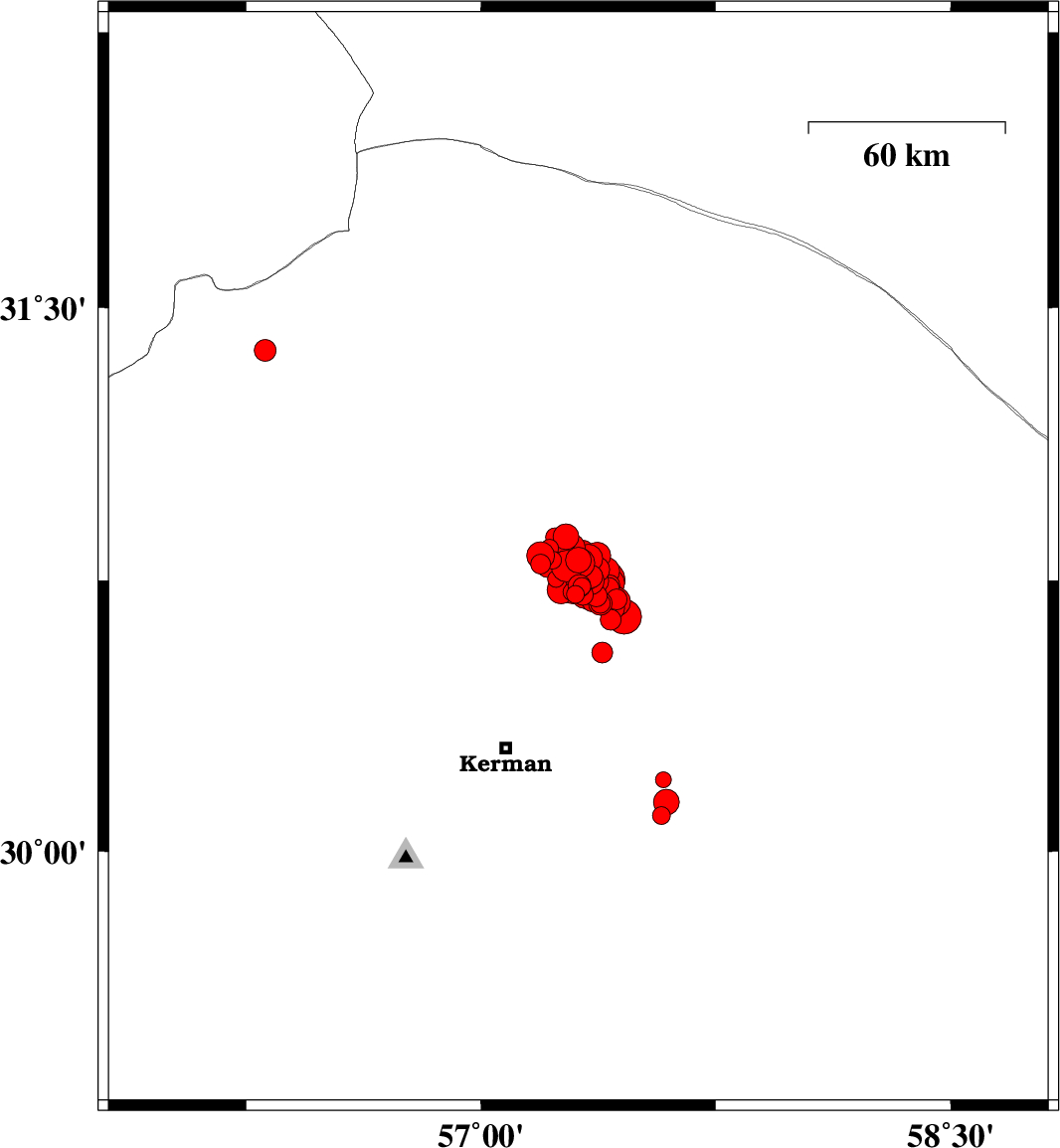 2017/12/02 10:50:40.4 14:20:40.4 30.75157.35615 ML4.1 Kerman Province, 58 km North-East of Kerman