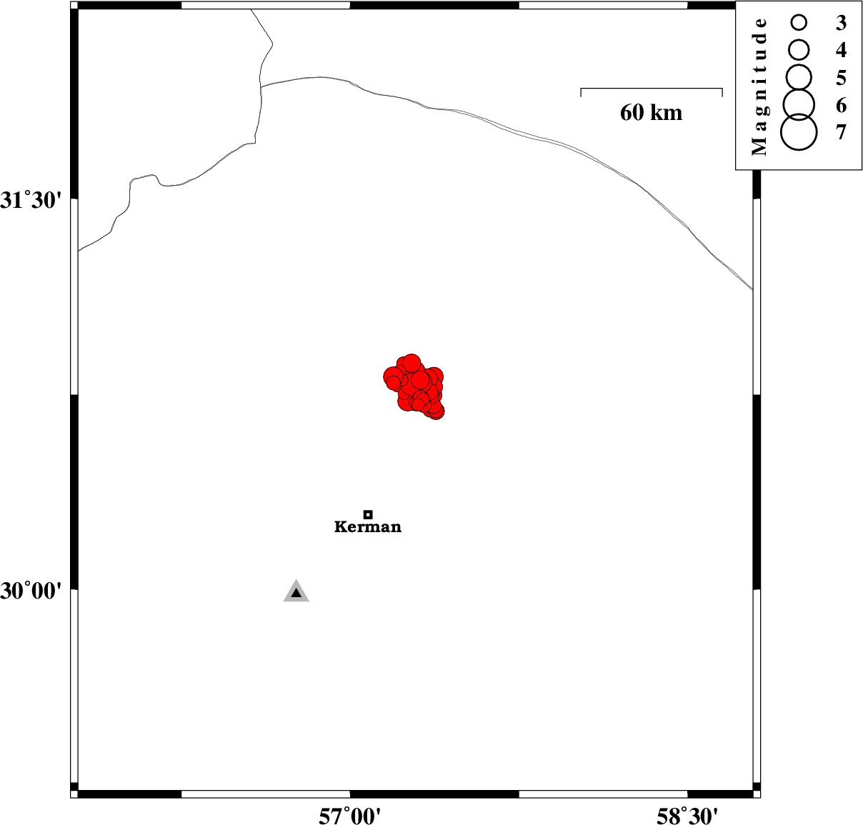 2017/12/12 09:42:22.6 13:12:22.6 30.79757.27915 ML4.2 Kerman Province, 60 km North-East of Kerman
