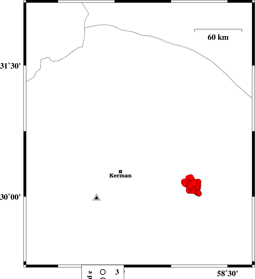 2017/12/12 11:42:23.6 15:12:23.6 30.79257.30714 ML3.2 Kerman Province, 60 km North-East of Kerman