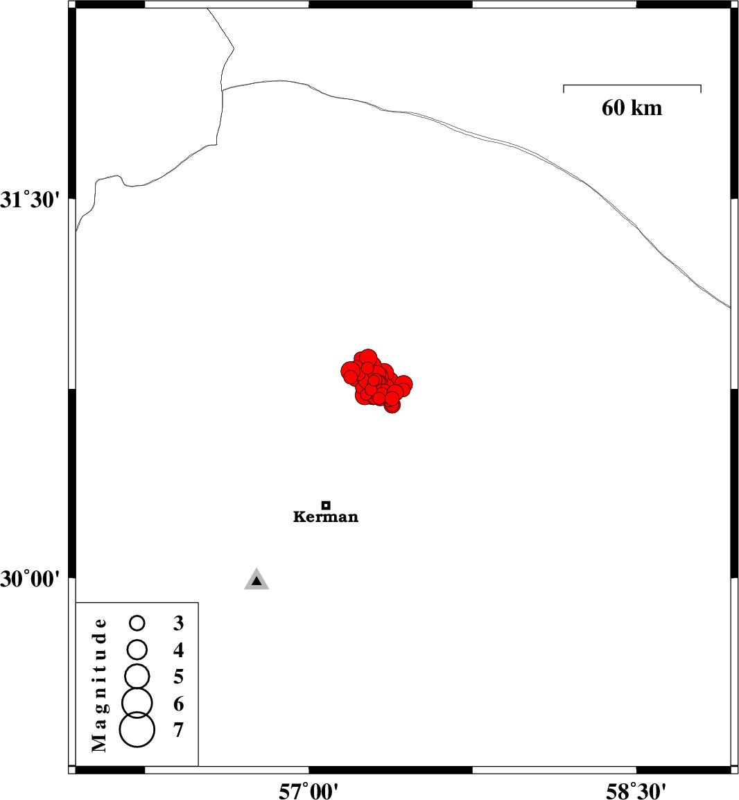 2017/12/12 23:05:34.8 02:35:34.8 30.77157.33214 ML3.6 Kerman Province, 59 km North-East of Kerman