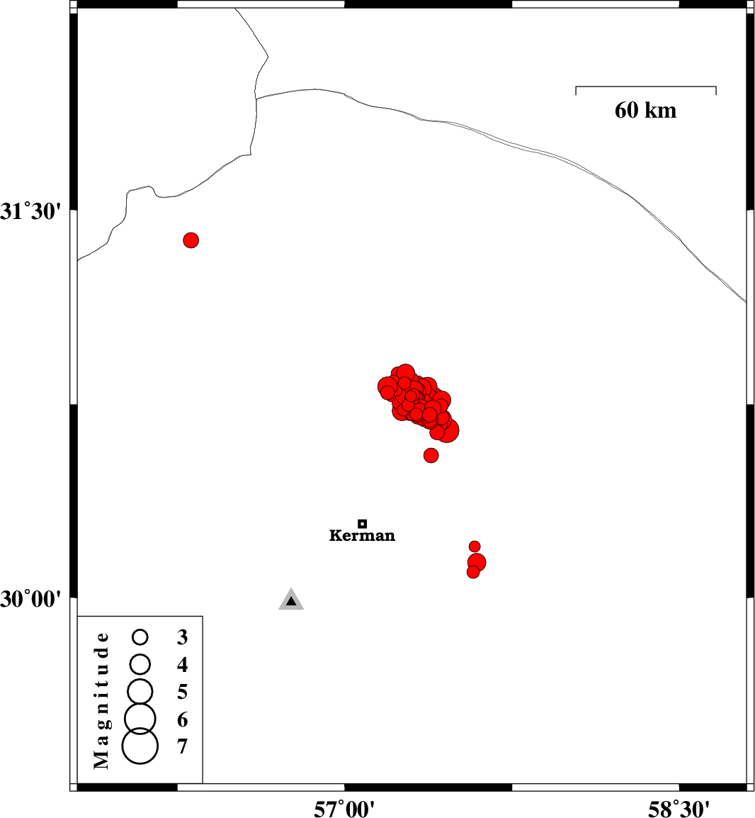 2017/12/02 10:50:40.4 14:20:40.4 30.75157.35615 ML4.1 Kerman Province, 58 km North-East of Kerman