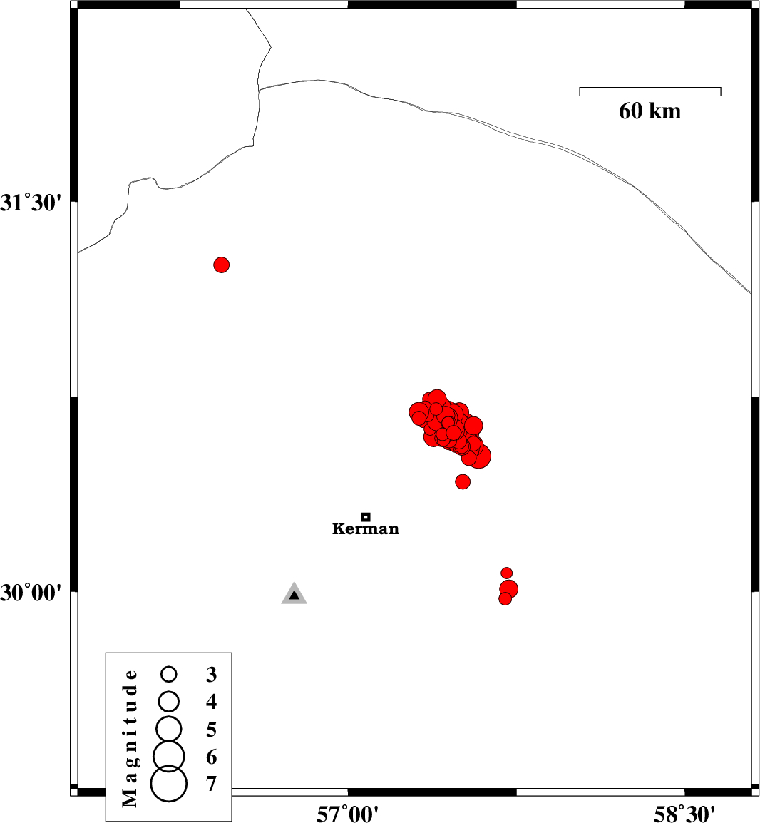 2017/12/04 02:50:05.5 06:20:05.5 30.70857.35118 ML2.7 Kerman Province, 53 km North-East of Kerman