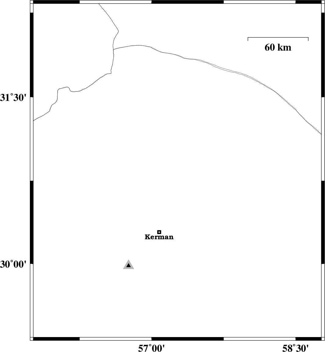 2017/12/02 10:50:40.4 14:20:40.4 30.75157.35615 ML4.1 Kerman Province, 58 km North-East of Kerman