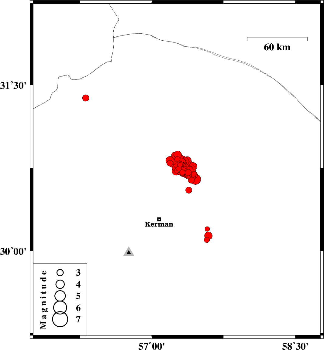 2017/12/01 04:33:27.2 08:03:27.2 30.72757.38814 ML2.7 Kerman Province, 57 km North-East of Kerman