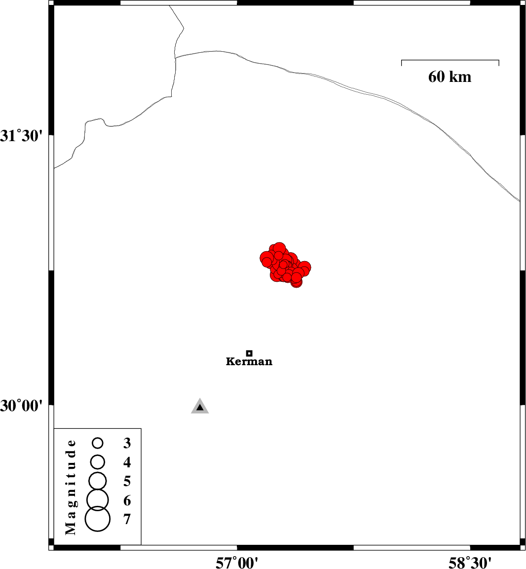 2017/12/12 23:05:34.8 02:35:34.8 30.77157.33214 ML3.6 Kerman Province, 59 km North-East of Kerman