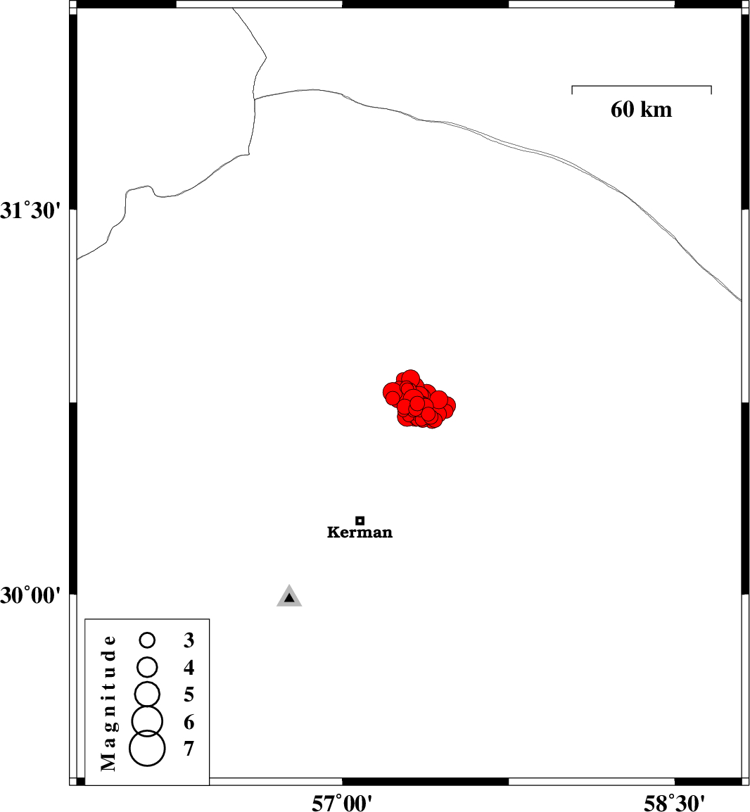 2017/12/17 06:07:57.5 09:37:57.5 30.77557.32414 ML3 Kerman Province, 59 km North-East of Kerman