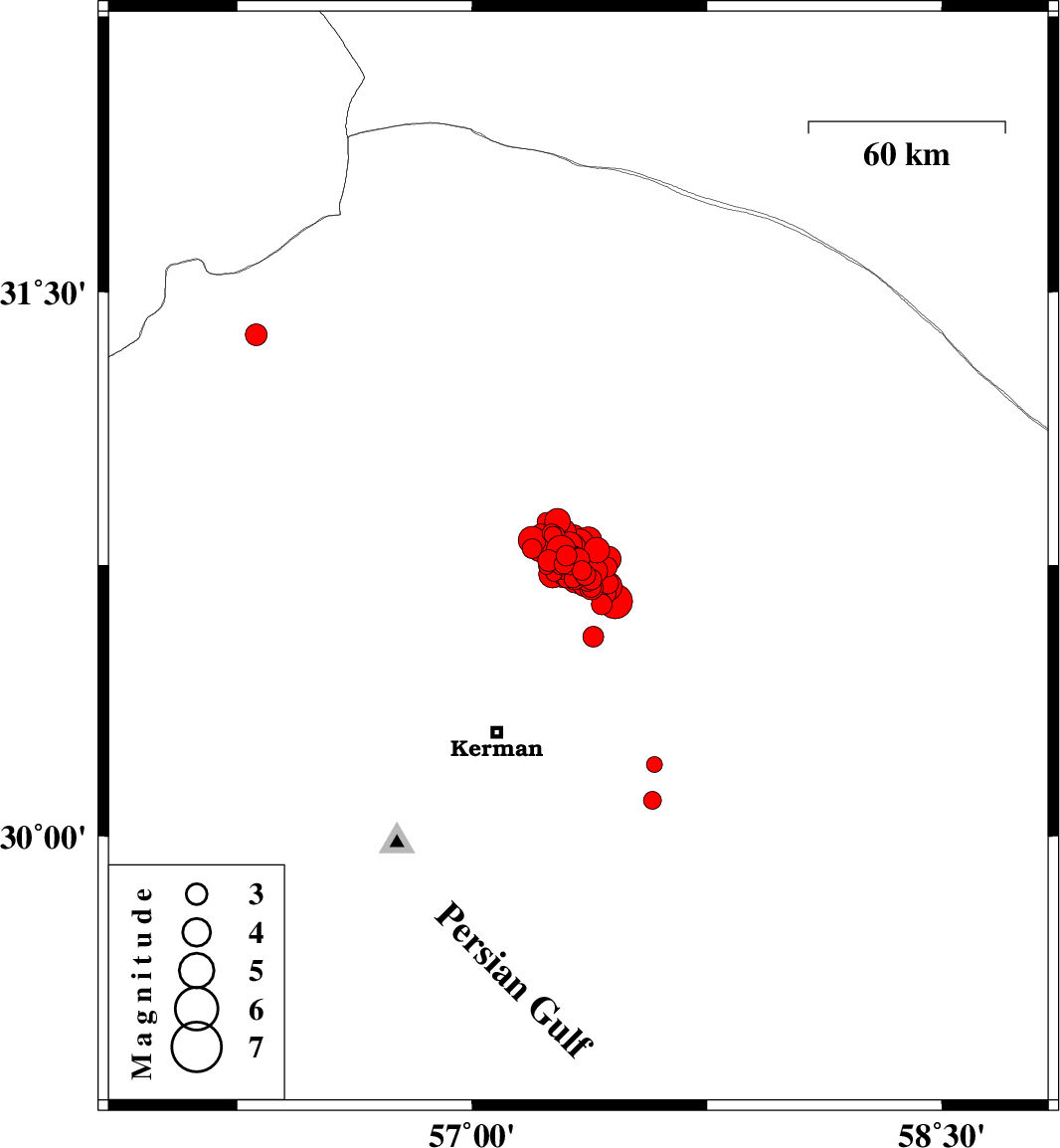 2017/12/02 10:50:40.4 14:20:40.4 30.75157.35615 ML4.1 Kerman Province, 58 km North-East of Kerman