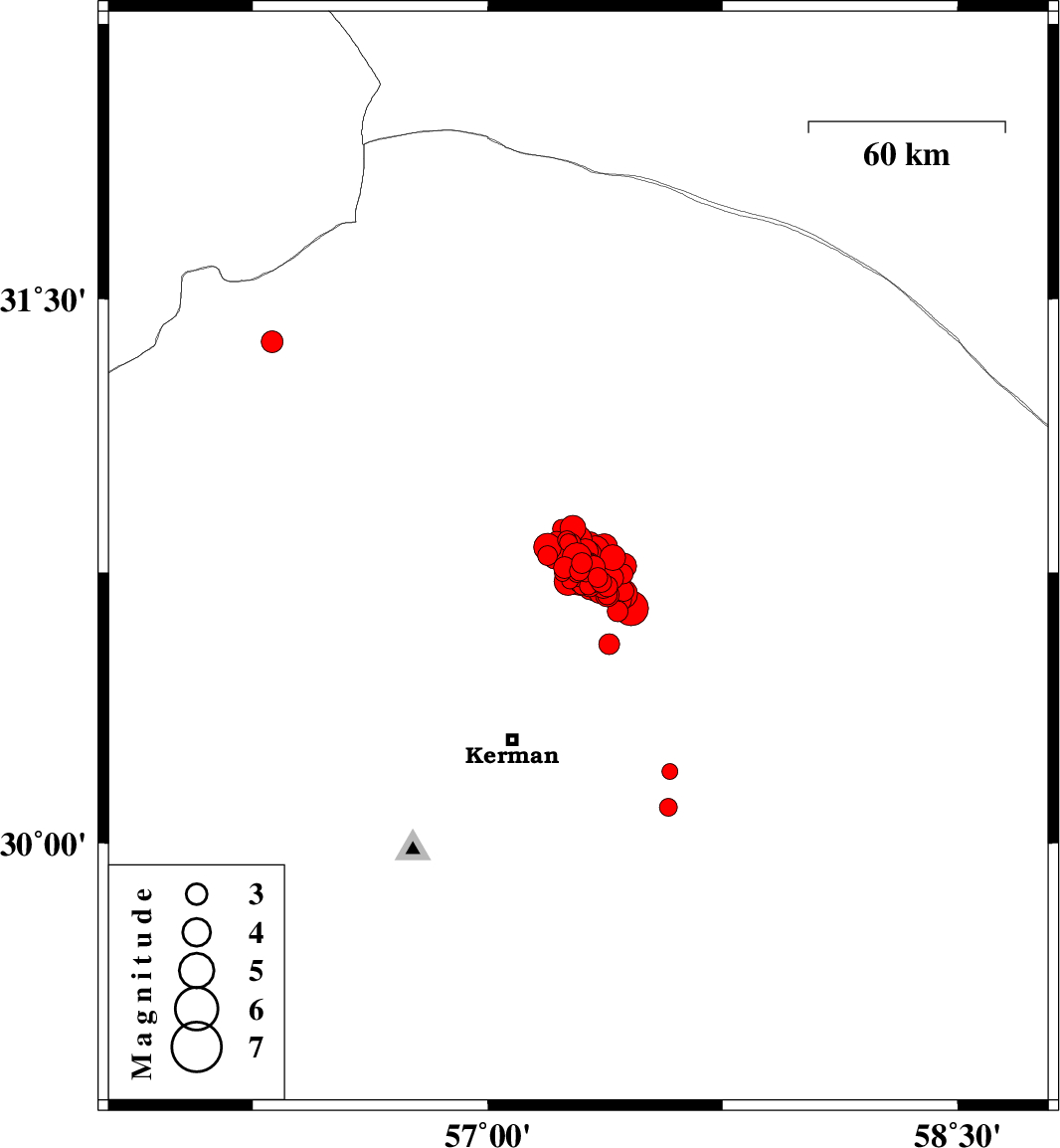2017/12/02 10:50:40.4 14:20:40.4 30.75157.35615 ML4.1 Kerman Province, 58 km North-East of Kerman
