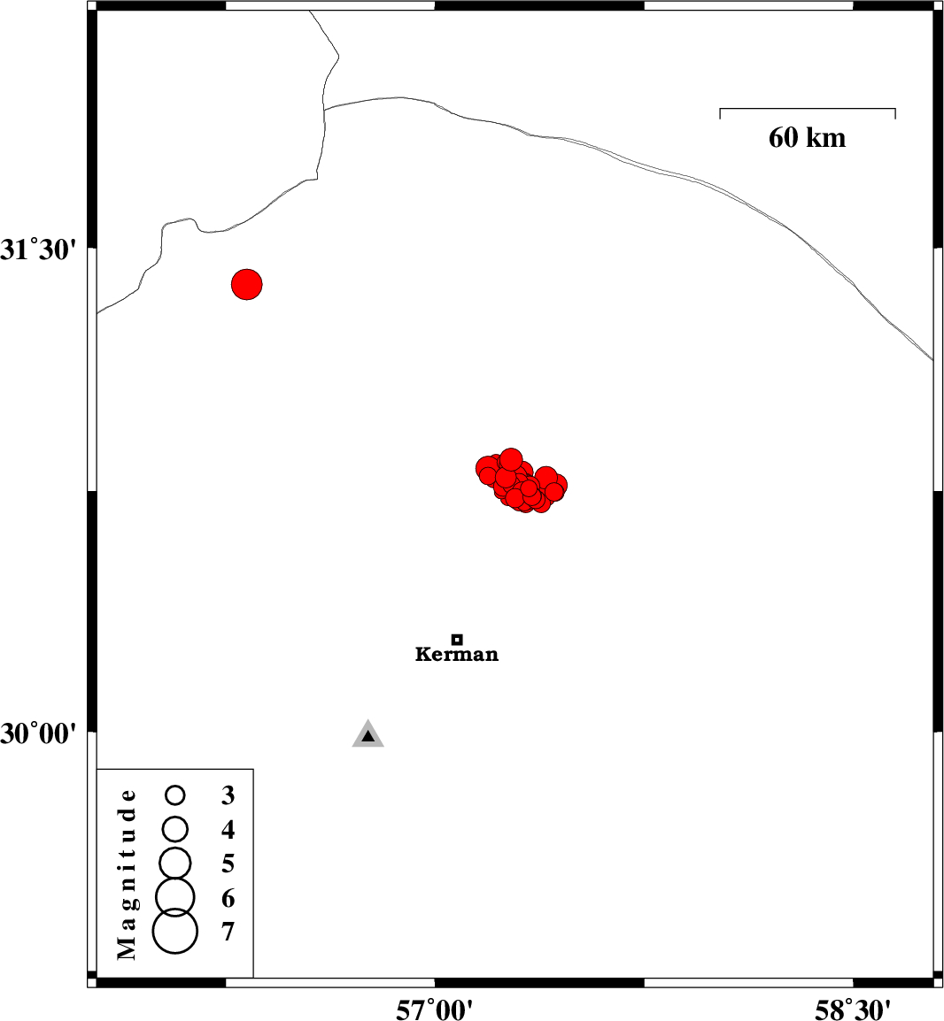 2017/12/17 06:07:57.5 09:37:57.5 30.77557.32414 ML3 Kerman Province, 59 km North-East of Kerman