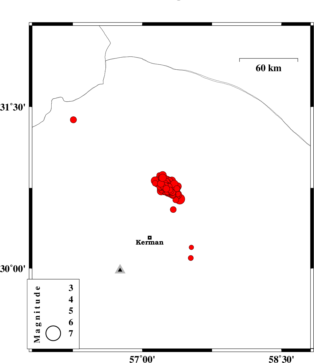 2017/12/02 10:50:40.4 14:20:40.4 30.75157.35615 ML4.1 Kerman Province, 58 km North-East of Kerman