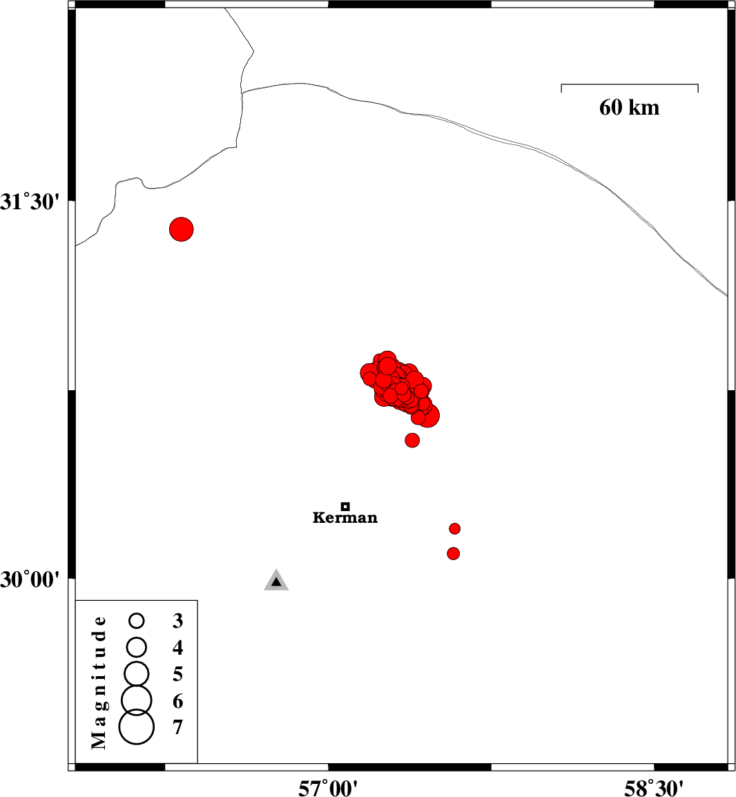 2017/12/01 04:33:27.2 08:03:27.2 30.72757.38814 ML2.7 Kerman Province, 57 km North-East of Kerman