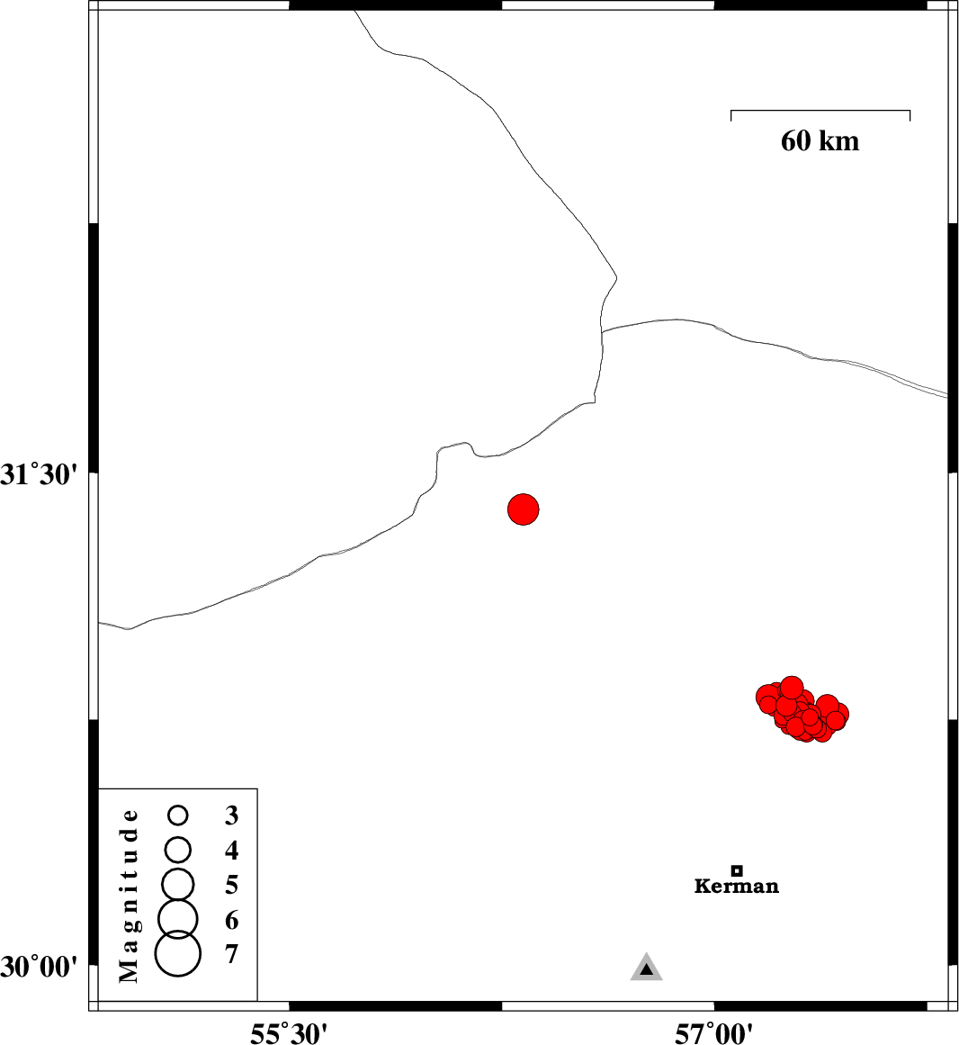 2017/12/17 11:08:51.6 14:38:51.6 30.73457.29614 ML2.6 Kerman Province, 54 km North-East of Kerman