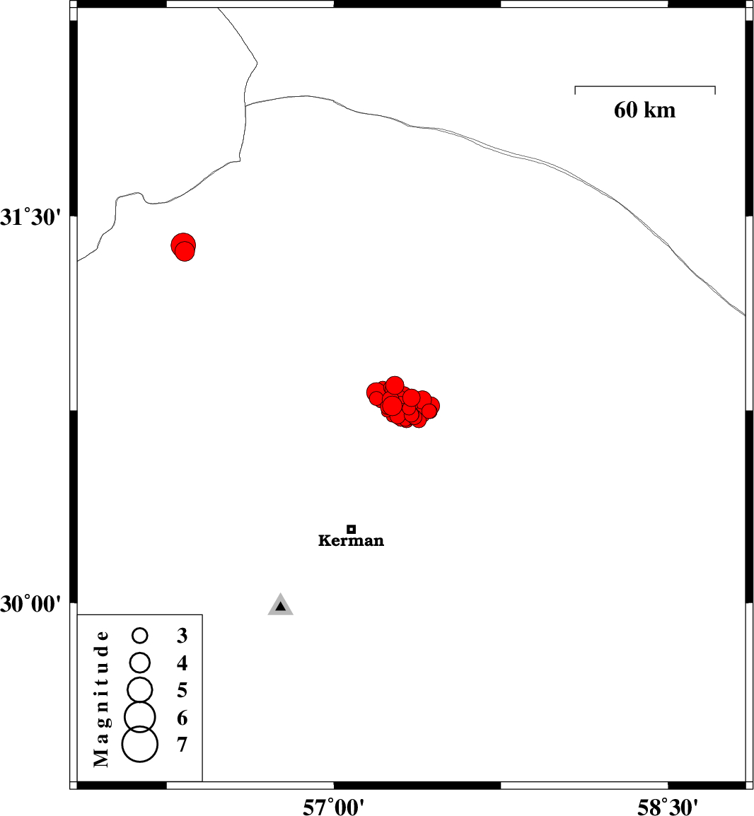 2017/12/17 11:08:51.6 14:38:51.6 30.73457.29614 ML2.6 Kerman Province, 54 km North-East of Kerman