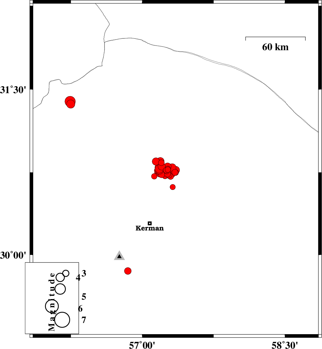 2017/12/17 11:08:51.6 14:38:51.6 30.73457.29614 ML2.6 Kerman Province, 54 km North-East of Kerman