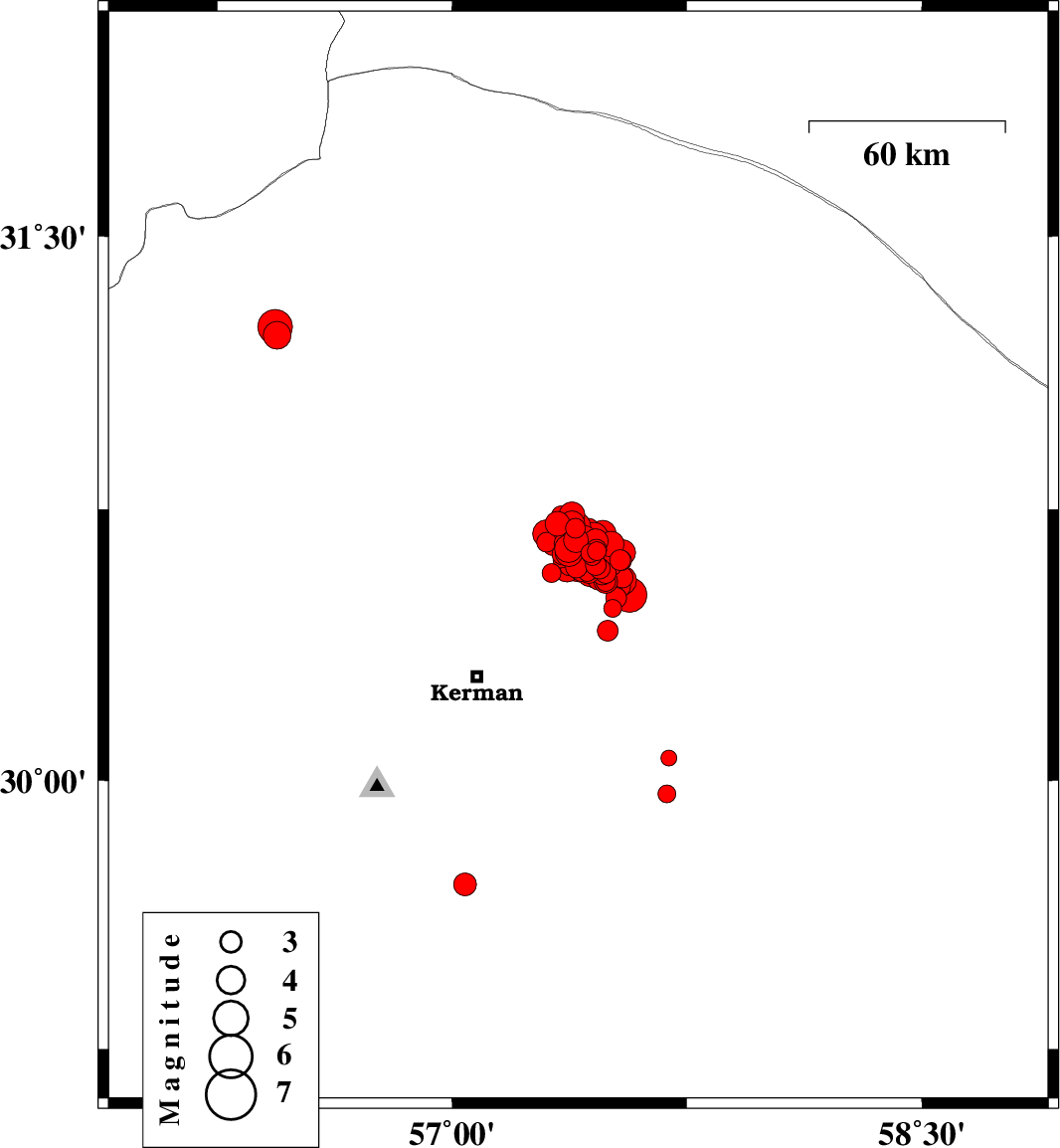 2017/12/02 10:50:40.4 14:20:40.4 30.75157.35615 ML4.1 Kerman Province, 58 km North-East of Kerman