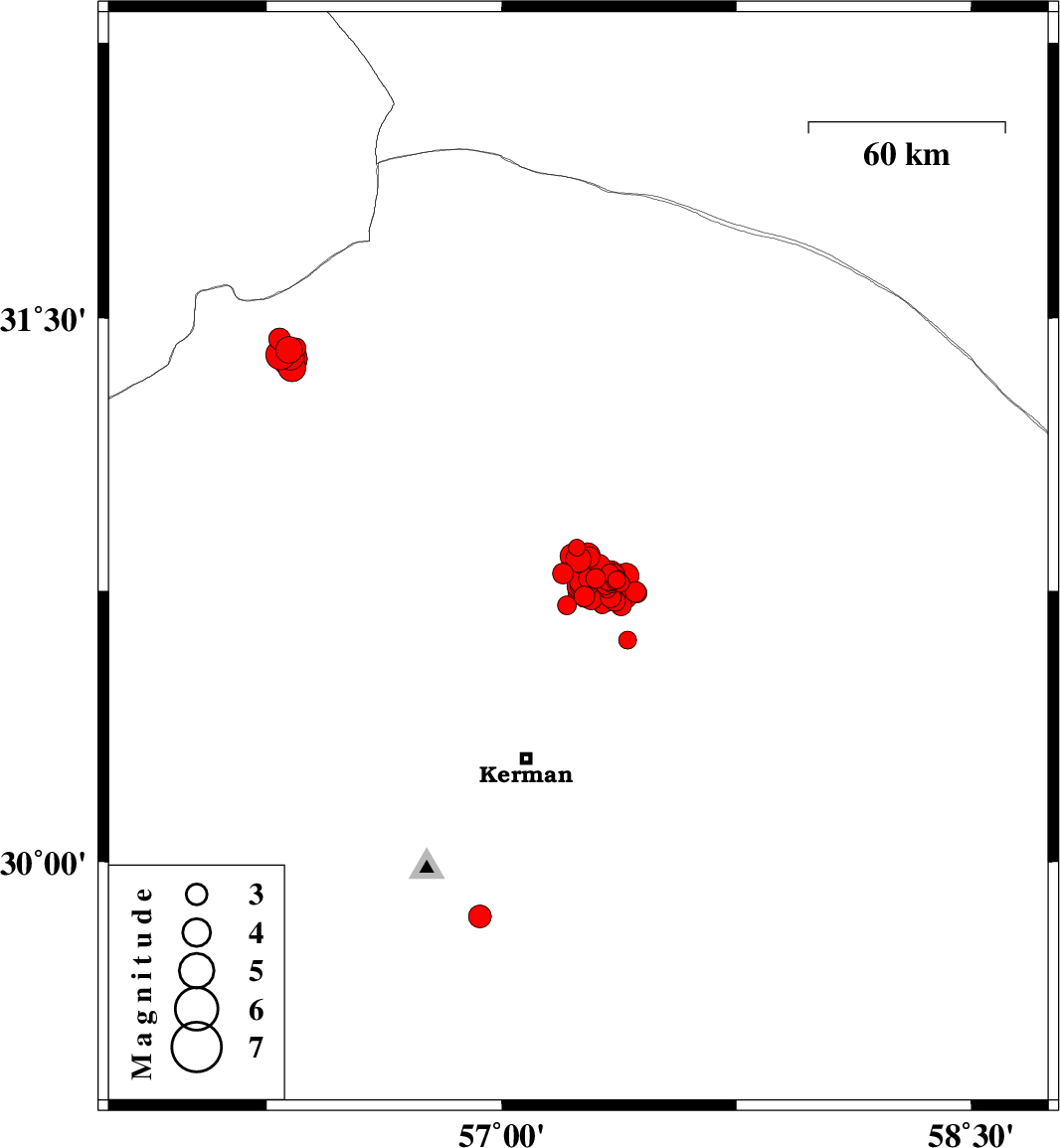 2017/12/25 03:34:16.3 07:04:16.3 30.78857.35214 ML4 Kerman Province, 61 km North-East of Kerman