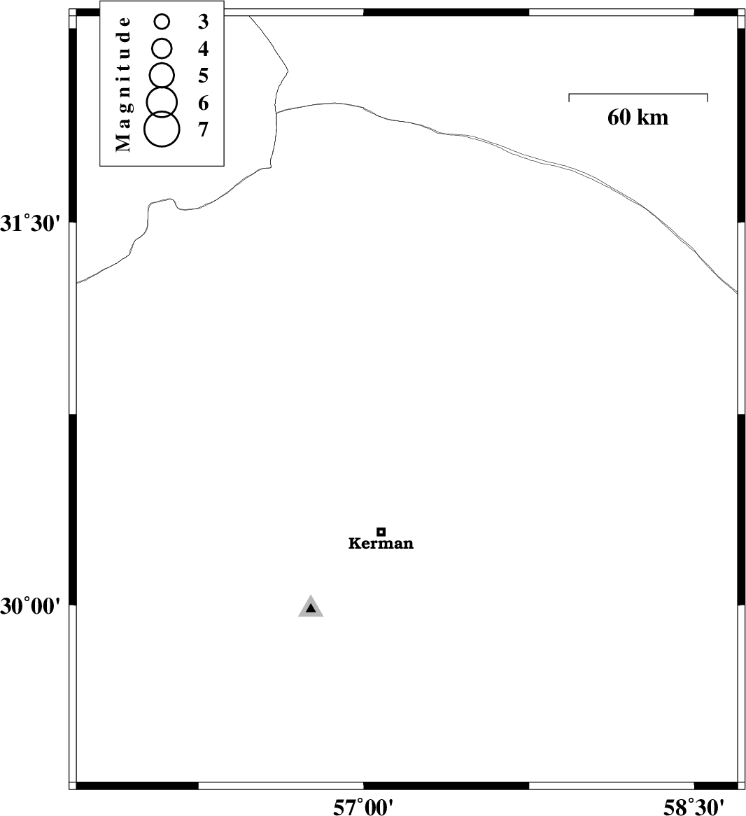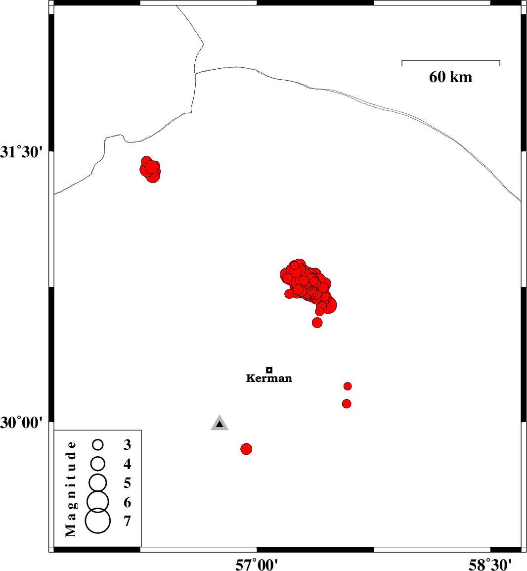 2017/12/02 10:50:40.4 14:20:40.4 30.75157.35615 ML4.1 Kerman Province, 58 km North-East of Kerman