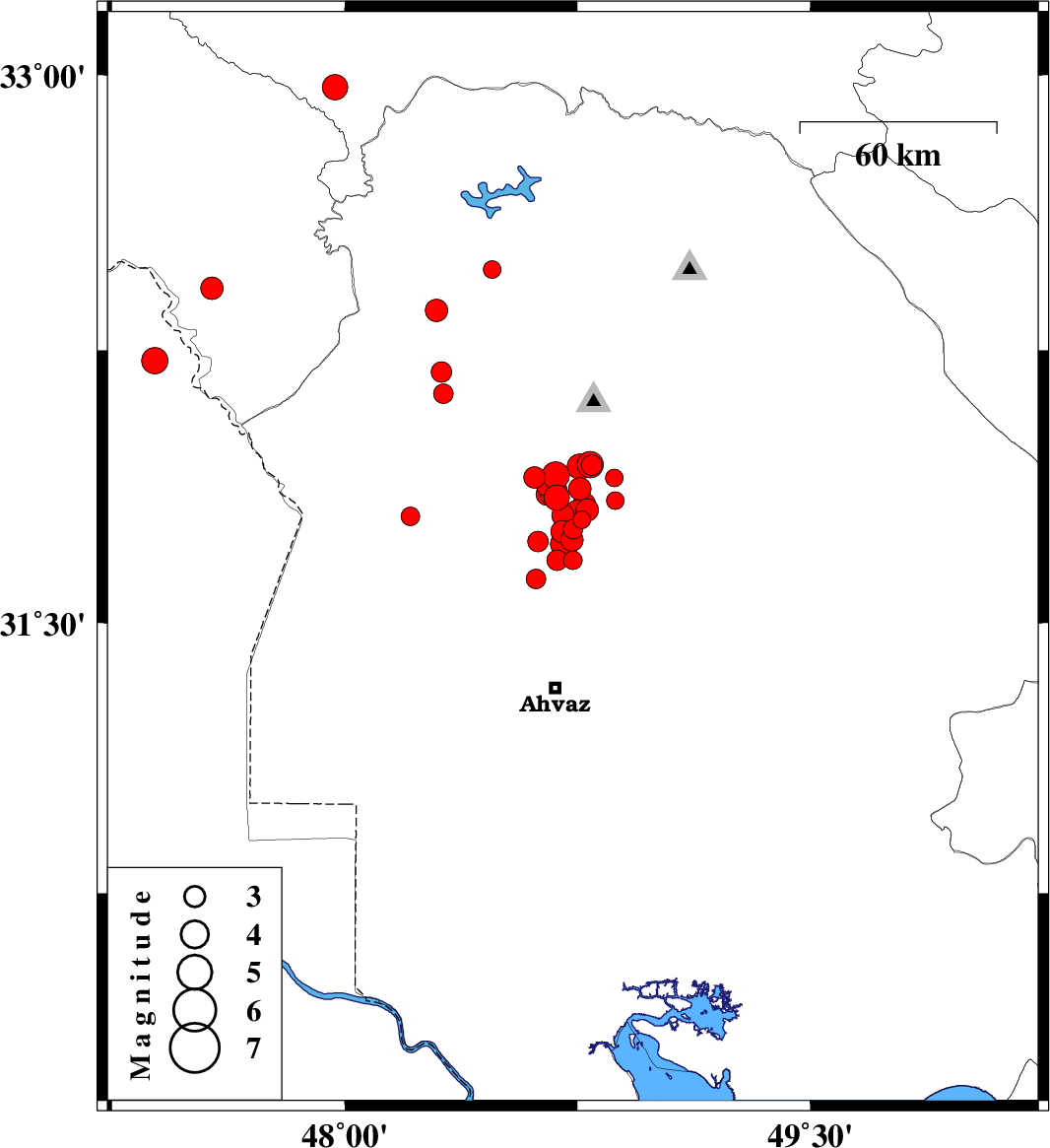 2017/12/31 03:51:44.9 07:21:44.9 31.72548.62215 ML3 Khoozestan Province, 45 km North of Ahvaz