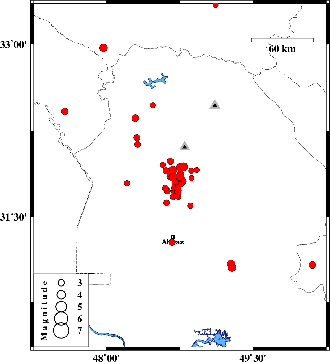 |  | 2018/01/02 | 04:02:47.3 | 07:32:47.3 | 31.679 | 48.717 | 15 | ML2.8 | Khoozestan Province, 40 km North of Ahvaz |  |
