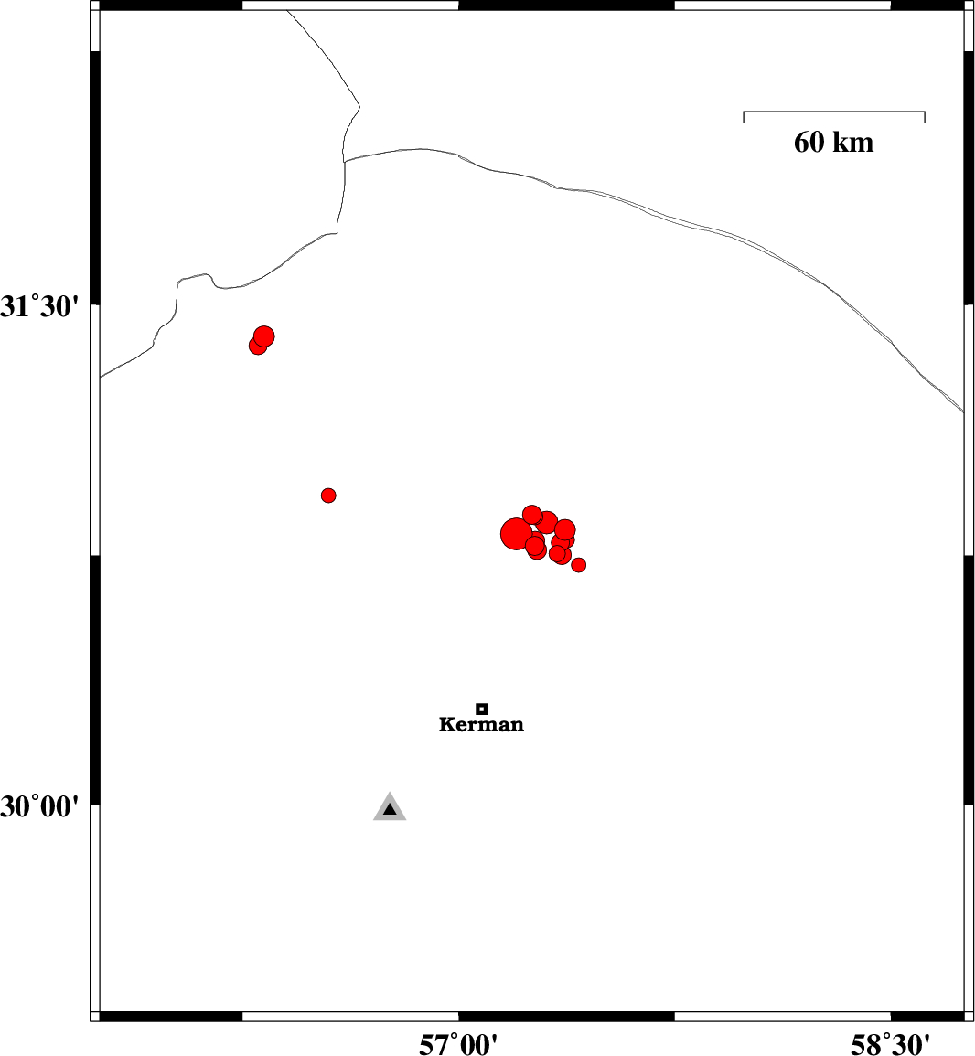 2017/12/30 07:43:16.9 11:13:16.9 30.77957.26414 ML2.9 Kerman Province, 57 km North-East of Kerman