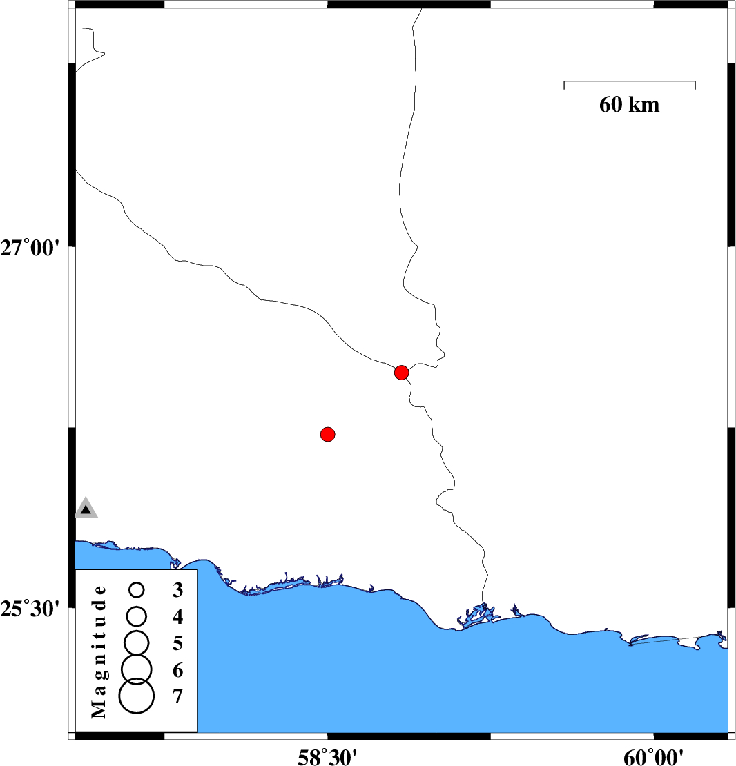 | 2018/01/02 | 07:24:16.2 | 10:54:16.2 | 26.478 | 58.84 | 14 | ML2.9 | Hormozgan Province, 139 km North-West of Nikshahr |