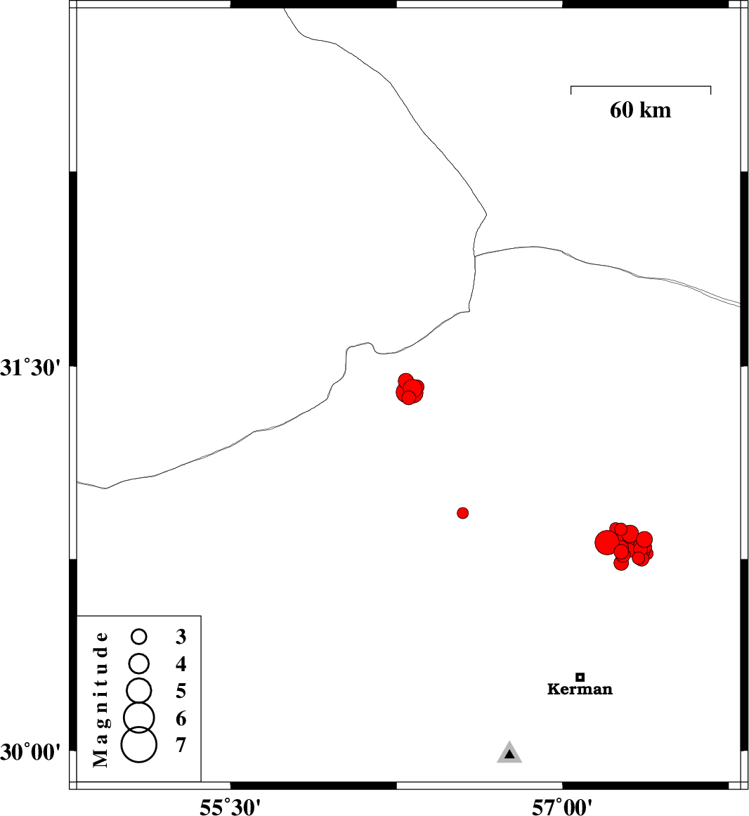 2017/12/25 12:08:23.8 15:38:23.8 30.78157.36714 ML2.6 Kerman Province, 61 km North-East of Kerman