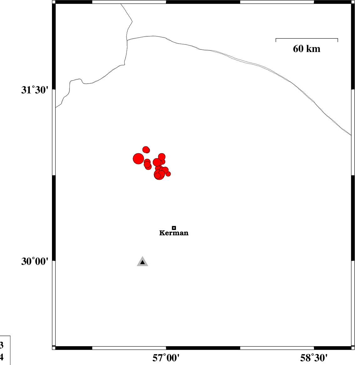 2018/01/03 17:54:57.5 21:24:57.5 30.79357.33514 ML3.7 Kerman Province, 61 km North-East of Kerman