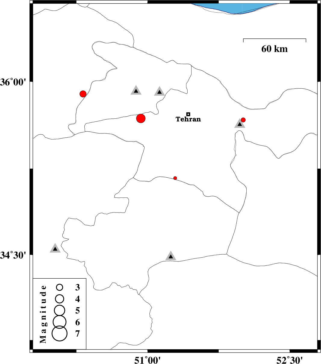 | 2017/12/26 | 21:24:34.2 | 00:54:34.2 | 35.684 | 50.93 | 15 | ML4.2 | Tehran Province, 13 km South of Karaj | ||
