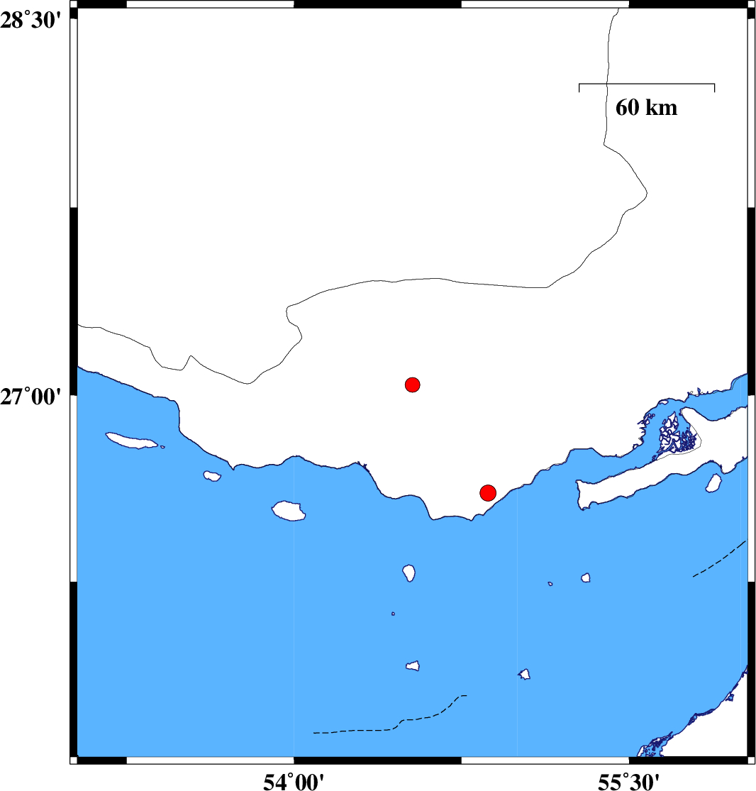 | 2018/01/02 | 17:38:15.3 | 21:08:15.3 | 27.042 | 54.53 | 17 | ML3 | Hormozgan Province, 24 km South-East of Bastak | ||