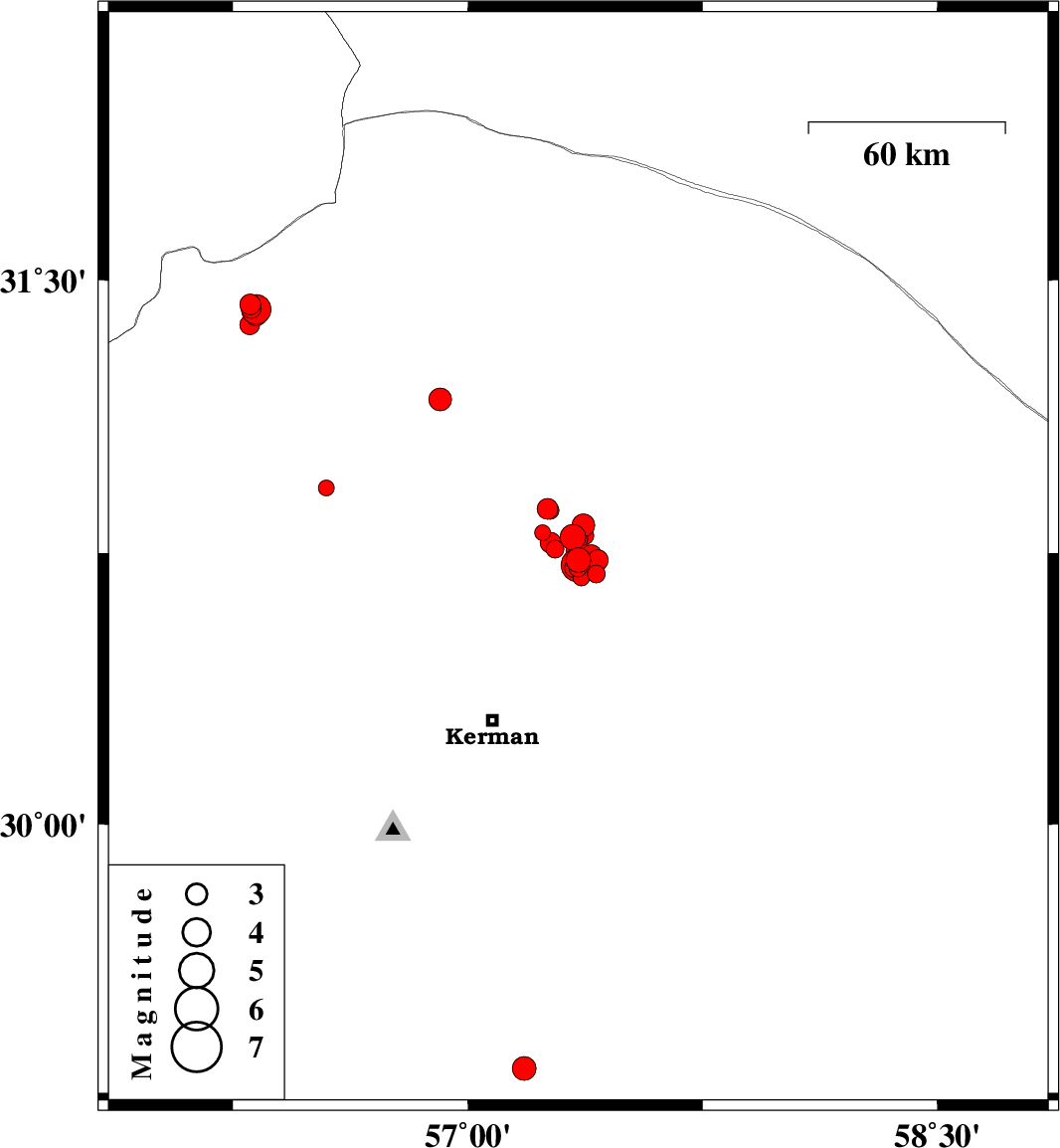 2018/01/03 15:57:14.2 19:27:14.2 30.74457.39417 ML2.9 Kerman Province, 59 km North-East of Kerman