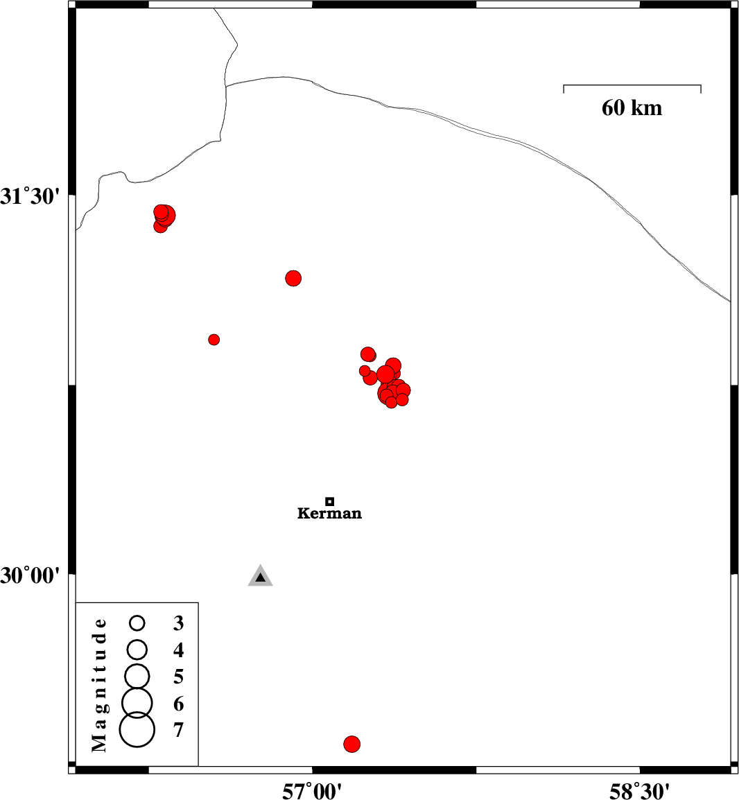 2018/01/03 15:57:14.2 19:27:14.2 30.74457.39417 ML2.9 Kerman Province, 59 km North-East of Kerman