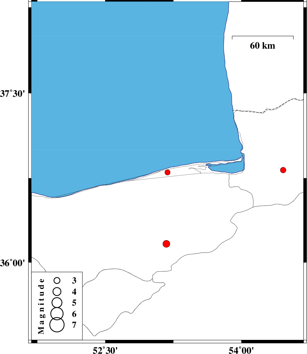 | 2017/12/30 | 00:56:33.9 | 04:26:33.9 | 36.822 | 54.46 | 15 | ML2.8 | Golestan Province, 3 km of Gorgan | ||