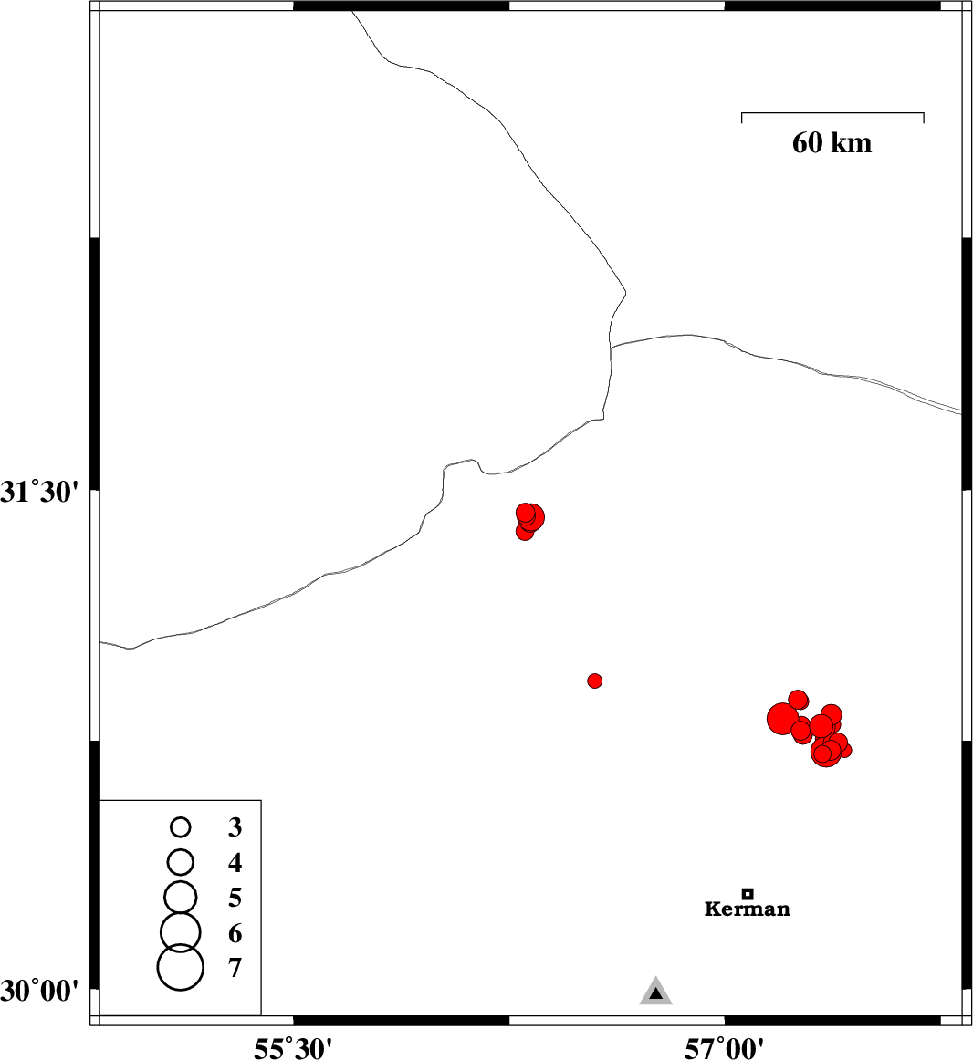 2018/01/03 17:54:57.5 21:24:57.5 30.79357.33514 ML3.7 Kerman Province, 61 km North-East of Kerman