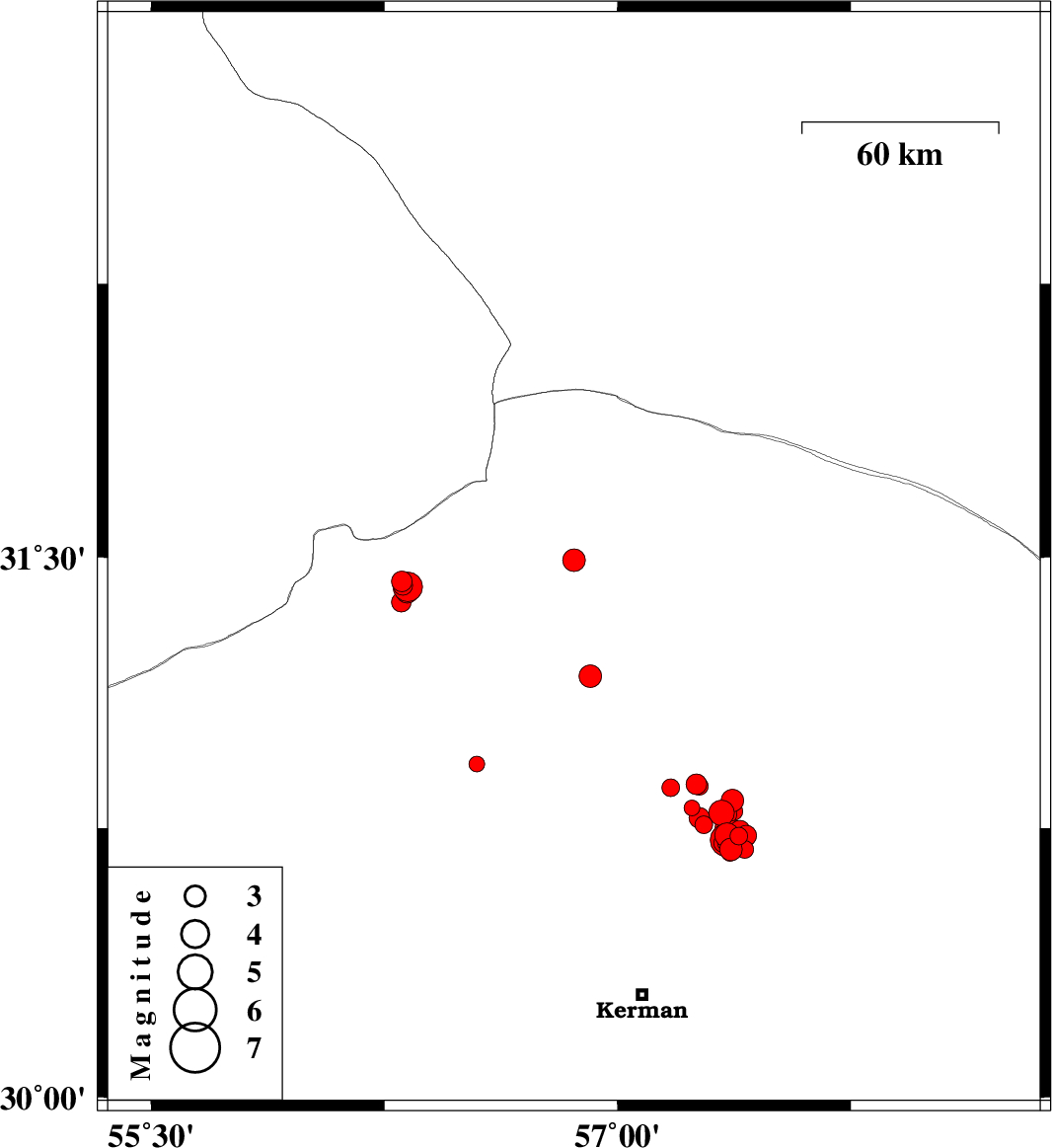 2018/01/01 06:32:57.5 10:02:57.5 30.75557.34214 ML2.6 Kerman Province, 58 km North-East of Kerman