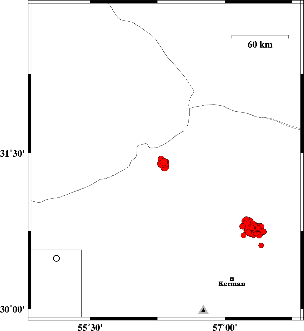 2017/12/25 12:08:23.8 15:38:23.8 30.78157.36714 ML2.6 Kerman Province, 61 km North-East of Kerman