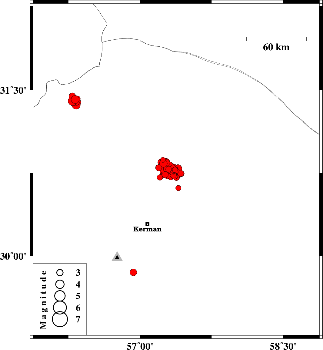 2017/12/19 23:04:07.6 02:34:07.6 30.77657.30117 ML2.9 Kerman Province, 58 km North-East of Kerman