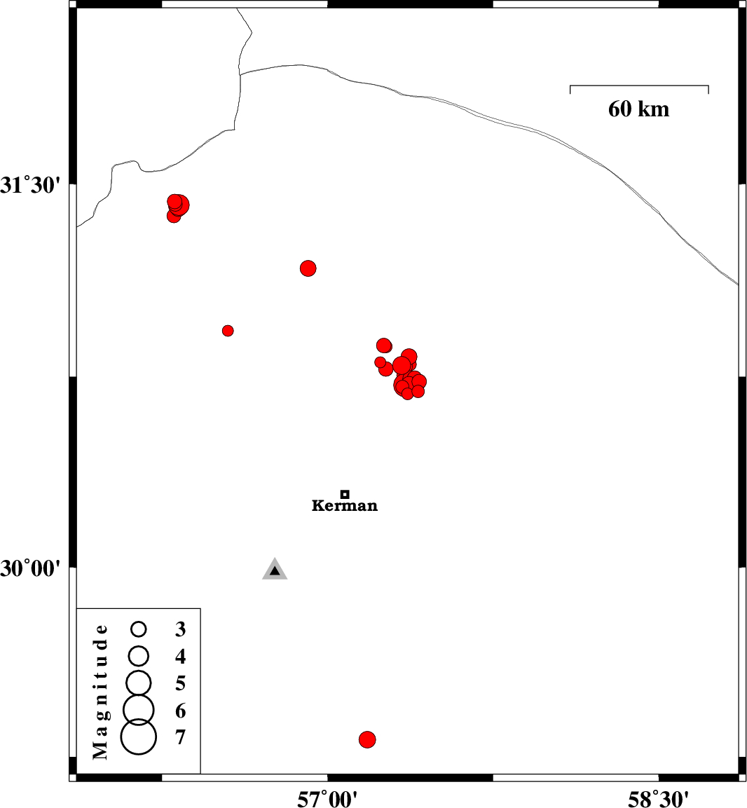 2018/01/03 17:54:57.5 21:24:57.5 30.79357.33514 ML3.7 Kerman Province, 61 km North-East of Kerman