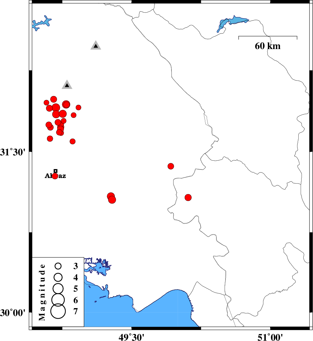 |  | 2018/01/01 | 17:50:14.2 | 21:20:14.2 | 31.708 | 48.731 | 15 | ML3.1 | Khoozestan Province, 43 km North of Ahvaz |  |