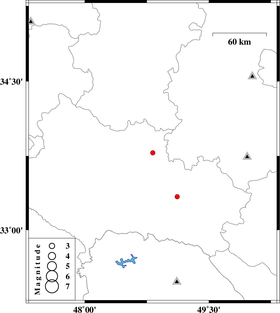 | 2018/01/04 | 04:40:17.9 | 08:10:17.9 | 33.781 | 48.822 | 9 | ML2.6 | Lorestan Province, 14 km South of Borujerd | ||