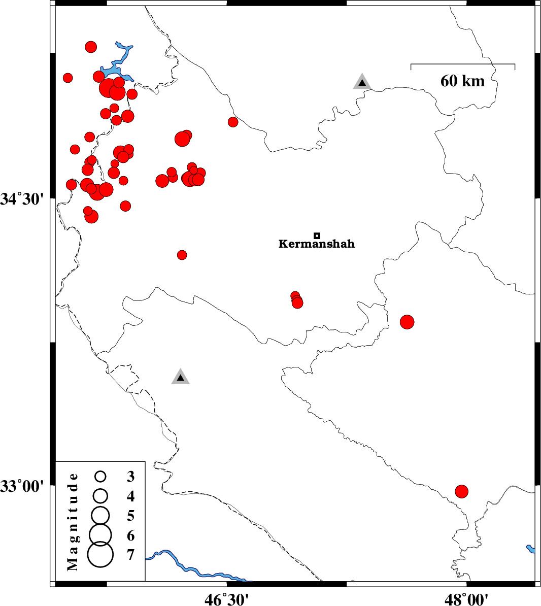 |  | 2018/01/04 | 08:19:11.4 | 11:49:11.4 | 33.968 | 46.938 | 14 | ML3 | Kermanshah Province, 39 km South-West of Kermanshah |  |