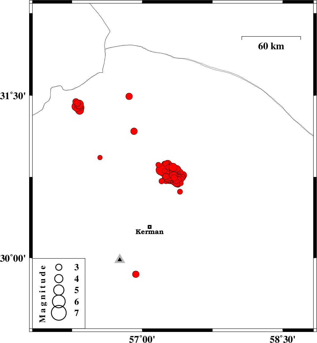 2017/12/17 06:07:57.5 09:37:57.5 30.77557.32414 ML3 Kerman Province, 59 km North-East of Kerman