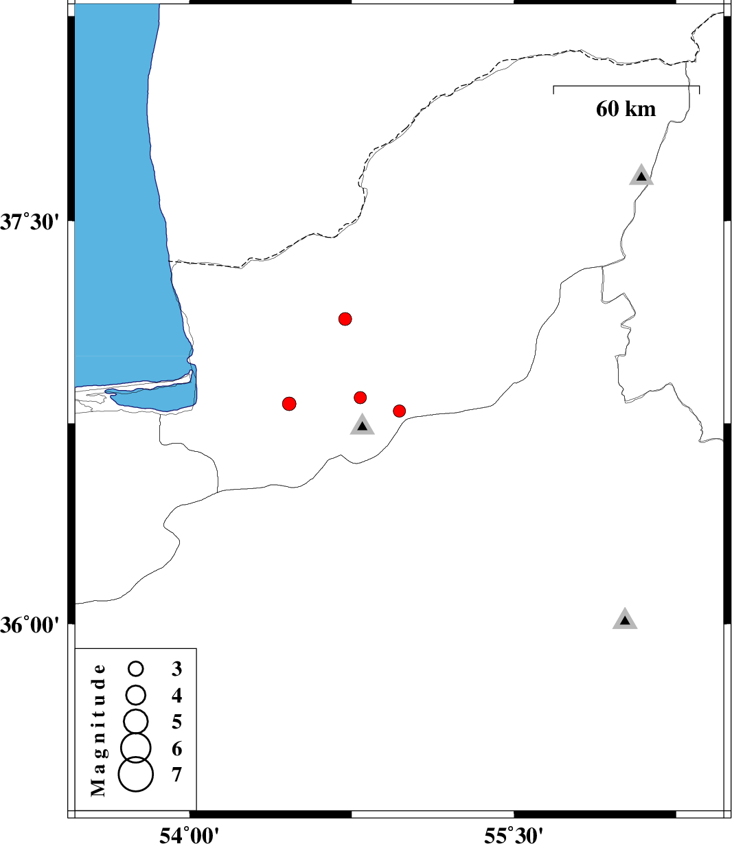 | 2017/12/30 | 00:56:33.9 | 04:26:33.9 | 36.822 | 54.46 | 15 | ML2.8 | Golestan Province, 3 km of Gorgan | ||