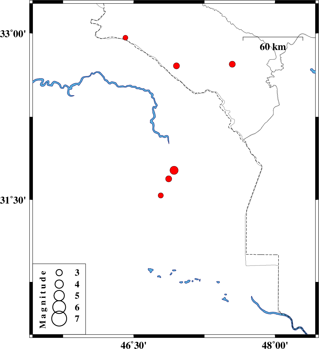 | 2018/01/15 | 22:06:37.5 | 01:36:37.5 | 31.689 | 46.871 | 14 | ML3 | Iraq | ||